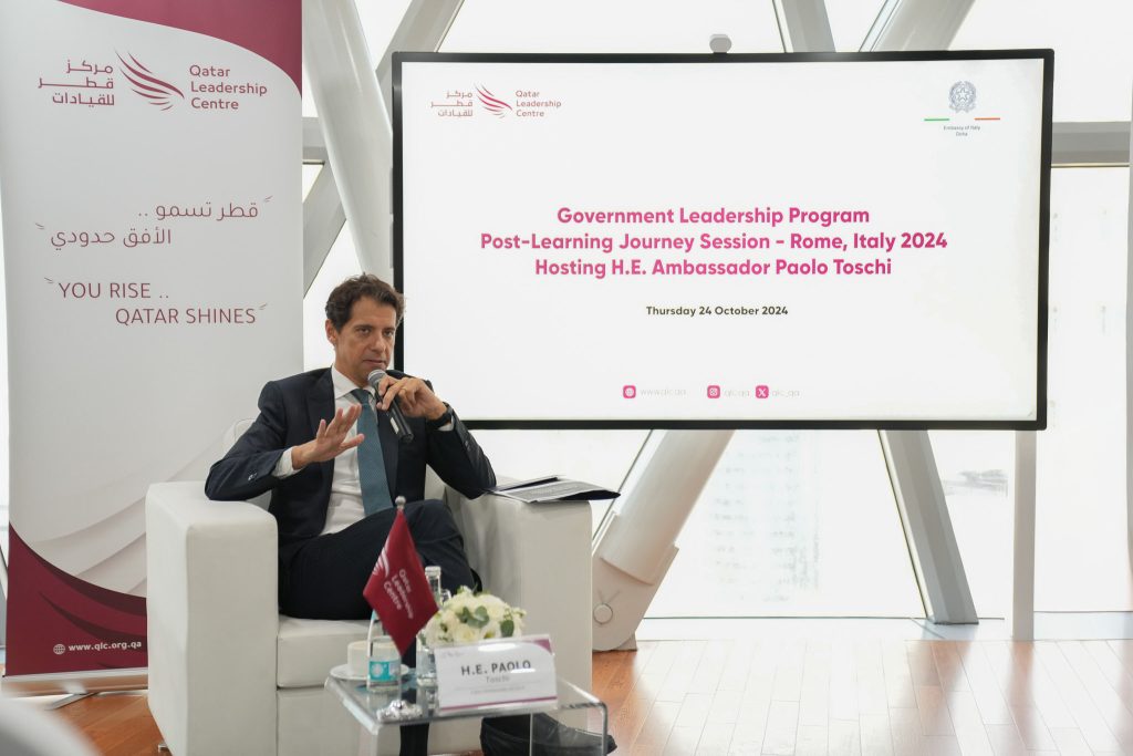 استضاف مركز قطر للقيادات سعادة السفير باولو توسكي، سفير الجمهورية الإيطالية لدى قطر، في جلسة نقاشية مع منتسبي المركز