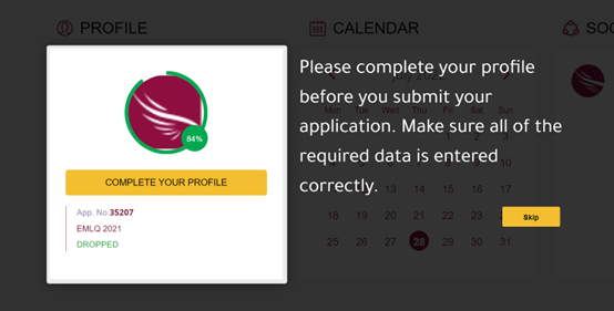 2. Once logged in, click on “Skip” to avoid editing the old application.