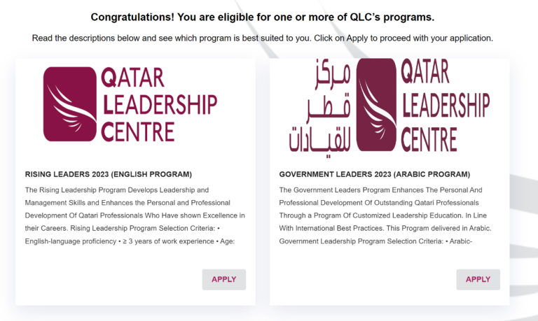 4.Click on Apply to select the program of your interest. Please check the QLC website (www.qlc.org.qa) for more information about each program.